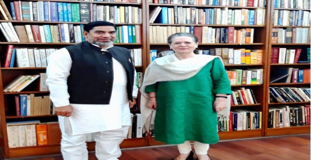 Aftab Ahmed, Congress MLA and Tausif Ahmed’s cousin with Congress leader Sonia Gandhi | Credit: Chunav Sathi